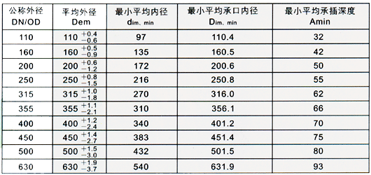 公稱內(nèi)徑DN/ID 最小平均內(nèi)徑dim.min 最小平均承插深度Amin 注:采用公稱內(nèi)徑系列