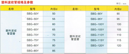 示例:1、內(nèi)徑為50mm的圓形塑料波紋管型號SBG-50Y