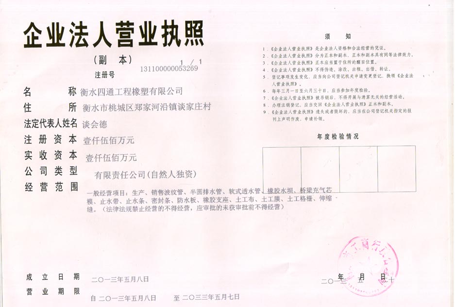 衡水四通工程橡塑有限公司 地址:衡水市衡湖經濟開發(fā)區(qū)1007號